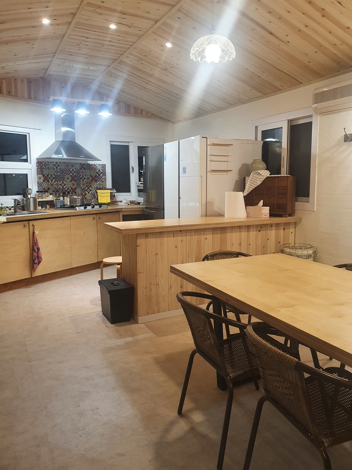 - Puedes estacionar en el estacionamiento público gratuito o frente al alojamiento (no hay otros edificios) en 3 minutos a pie. ※ Estacionamiento público: busca 'Fecal Market Parking Lot Entrance 2' o 'Fecal Market Parking Lot Entrance 3' ※ 588 Gijanghaean-ro, Gijang-eup, Gijang-gun, Busan - Hay un baño cada uno dentro y fuera del edificio, y puedes usar la cocina:) - Las ondas de televisión x, terrestres x/ott (YouTube, Netflix, etc.) se pueden usar con tu propia cuenta. - Las comidas sencillas son posibles en la mesa al aire libre, pero no se permite la barbacoa. - Por favor, abstente de hacer demasiado ruido después de las 9 en punto para los residentes circundantes. - Avísame si tienes alguna otra pregunta:) - No dudes en preguntar lo que quieras saber:) - Se admiten hasta 5 personas.