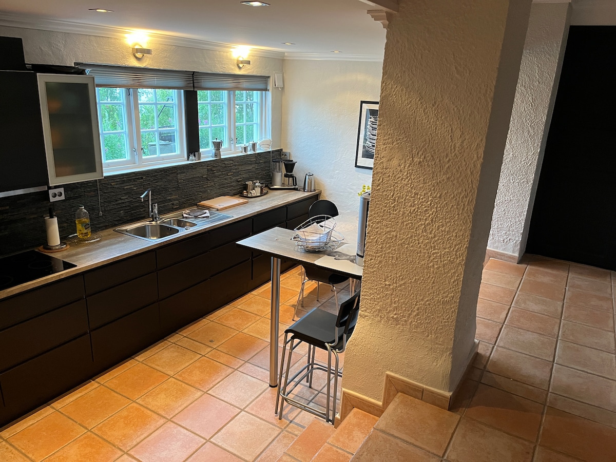 Cómodo apartamento moderno en la planta baja con entrada privada. Perfecto para escalas. Refugio para aquellos que necesitan relajarse y descansar y explorar los alrededores. El apartamento está en una colina a 2,3 km del centro del pueblo, con preciosas vistas a la montaña con vistas al pueblo y Hallingskarvet. Los terrenos son de 5500 m2. El apartamento es de 80 m2, salón, cocina, baño y dos dormitorios. Se incluyen ropa de cama, toallas y todos los artículos básicos. Los huéspedes deben dejar el apartamento ordenado.