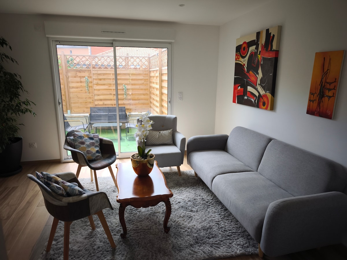 Buenos días, Satisfacción asegurada ideal para una familia o compañeros de trabajo, en un entorno verde compuesto por dos dormitorios, uno con balcón, una gran cocina totalmente equipada, dos duchas a ras de suelo, y un gran salón con una gran terraza tranquila. - cerca del hospital Jean Minjoz - policlínica - parque de exposiciones micropolis -ZAC châteaufarine -10 min del circuito del centro de la ciudad de Besançon -1 min piscina - pista de patinaje WiFi+Netflix sábanas+toallas incluidas Aparcamiento privado frente a la casa.