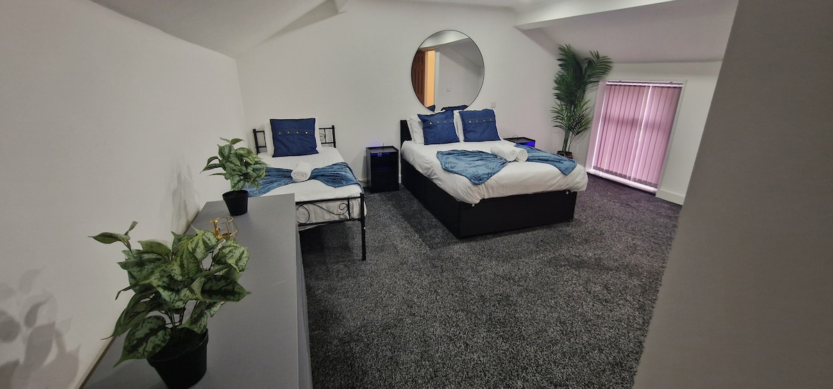Un espacioso apartamento de dos dormitorios con un ambiente moderno situado en el corazón de Cardiff con una cocina totalmente equipada, salón de planta abierta y baño grande. A pocos minutos a pie de la estación central de tren de Cardiff, el estadio Principality, Utilita Arena y el castillo de Cardiff. Ideal para compras, eventos y viajes de negocios. A veces es posible hacer el check-in o el check-out antes o después de la hora establecida. Al llegar a Cardiff, dirígete al apartamento (después de las 11:45 a. m.). Si los limpiadores están allí, deja tu equipaje en el armario del pasillo.