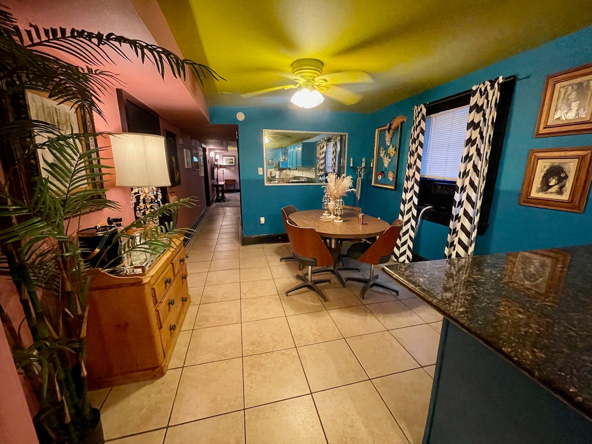 Situado en una histórica casa de escopeta en una manzana tranquila y acogedora en el moderno barrio de Bywater. Este soleado apartamento con baño tiene suelos de madera, techos altos, una cocina completa, un patio privado y una divertida estética con temática de bebidas alcohólicas. A poca distancia a pie de muchos restaurantes y bares, así como de Crescent Park, que ofrece hermosas vistas al río. Más allá del barrio, el Barrio Francés, Frenchmen Street y el CBD están a poca distancia en bicicleta.