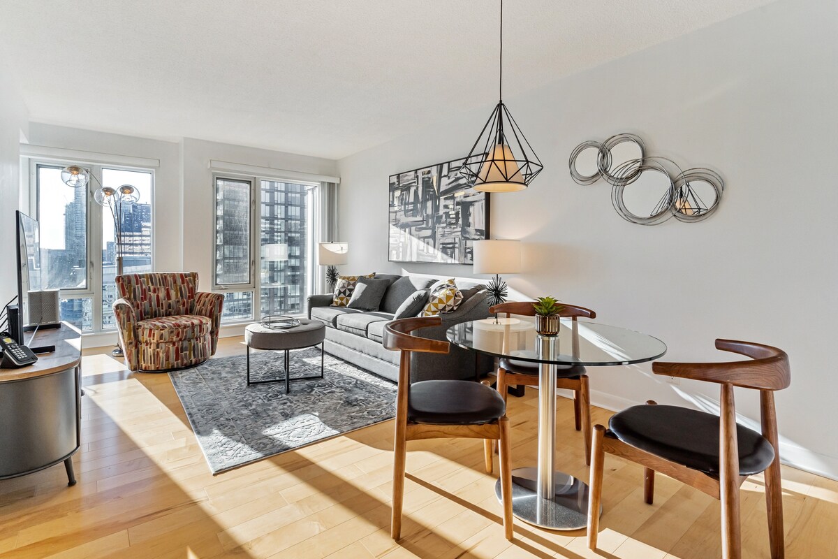 Siéntase como en casa en este elegante apartamento de un dormitorio ubicado en el corazón de la ciudad. Tanto si estás aquí para explorar, relajarte o trabajar, estás en el lugar perfecto para disfrutar de todo. Descubre tiendas cercanas, asiste a una actuación en directo, disfruta de una obra de teatro o visita algunos de los lugares emblemáticos de la ciudad. Estarás a solo unos minutos de Dundas Square, Eaton Centre, The PATH, St. Michael's Hospital y TMU (Ryerson University). Ideal para una escapada urbana, un viaje de negocios, una mudanza o un retiro romántico.