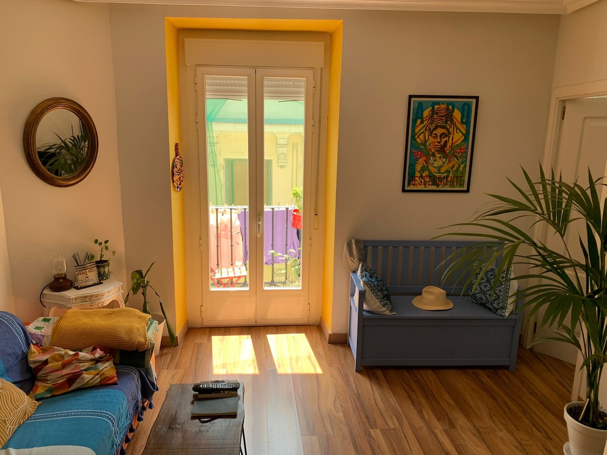 El loft está a menos de cinco minutos andando de la Gran Vía, a la altura de Callao. Se encuentra en un antiguo palacio nobiliario y tiene unas ventanas muy grandes. El huésped tendrá el dormitorio completo que se ve en las fotos para él/ella. Este espacio está abierto al comedor, pero puede cerrarse mediante cortinas. En la casa vivimos dos chicos gays. Alojamiento gay-friendly.