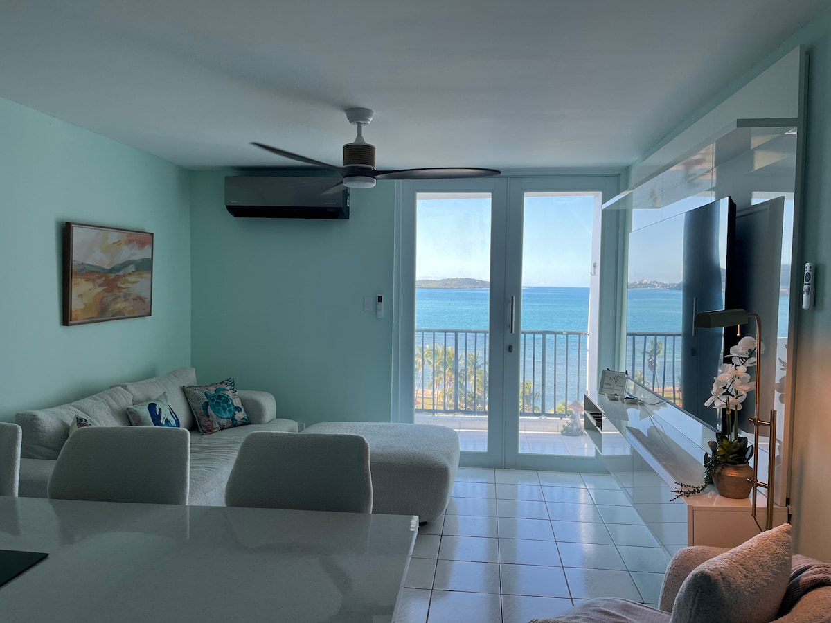Welcome to Our Property at Dos Marinas I. Unwind at this oceanfront apartment. A million dollar view to icacos, culebra, Vieques and palomino from the balcony. This Apartment is a place for you to retreat, relax, reset and revive yourself. Located close to four marinas,shops and restaurants. The condo has a Olympic swimming pool, gazebos, basketball and tennis courts. A Fully Equipped bedroom with AC. Wake up to the Ocean breeze and sound. Note: Ac is only in the bedroom.
