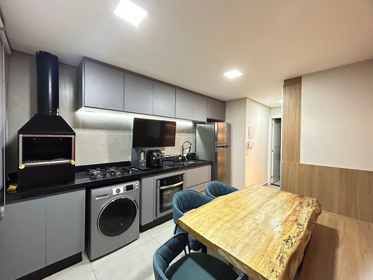 Dúplex de 1 dormitorio, zona exterior con jacuzzi, barbacoa, oficina doble y todas las comodidades para disfrutar de tu estancia. El edificio tiene ascensor, pero el apartamento tiene una escalera interna para acceder a la zona superior, esta escalera tiene una inclinación más alta de lo normal, por lo que no es apto para personas con problemas de movilidad (ver foto de la escalera) - Frier de aire. - Refrigerador y minibar. - 2 Televisões - Horno - Barbacoa. - Lavadora.