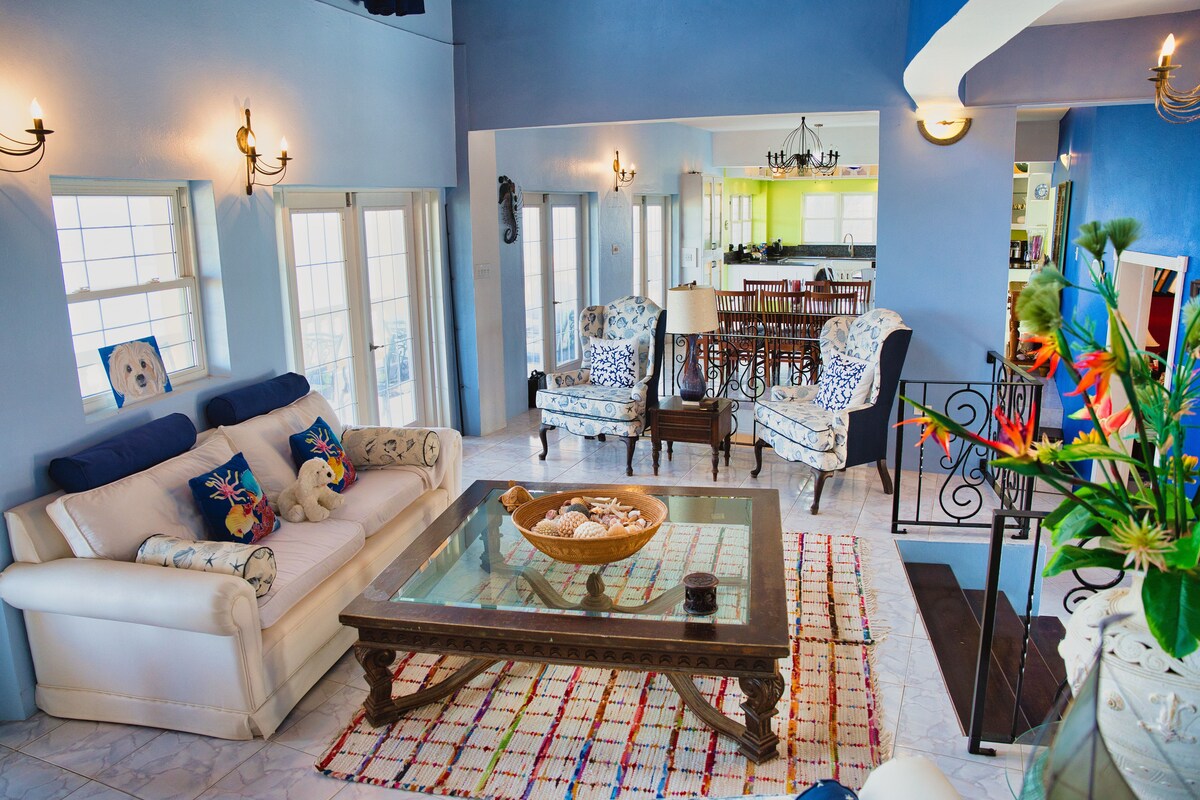 Hermosa villa con ESPECTACULARES vistas al mar. Cuidadosamente diseñado pensando en los elementos naturales para una vida isleña muy cómoda. Situada con vistas a Turtle Beach Cove en la punta de la península del sudeste se encuentra la muy tranquila y privada Ocean Song Villa. Jardines tropicales maduros con aves que rodean nuestra villa. ¡Turtle Beach es un barrio tranquilo cerca de algunos excelentes restaurantes y bares de playa de playa tanto de estilo local como de primer nivel!