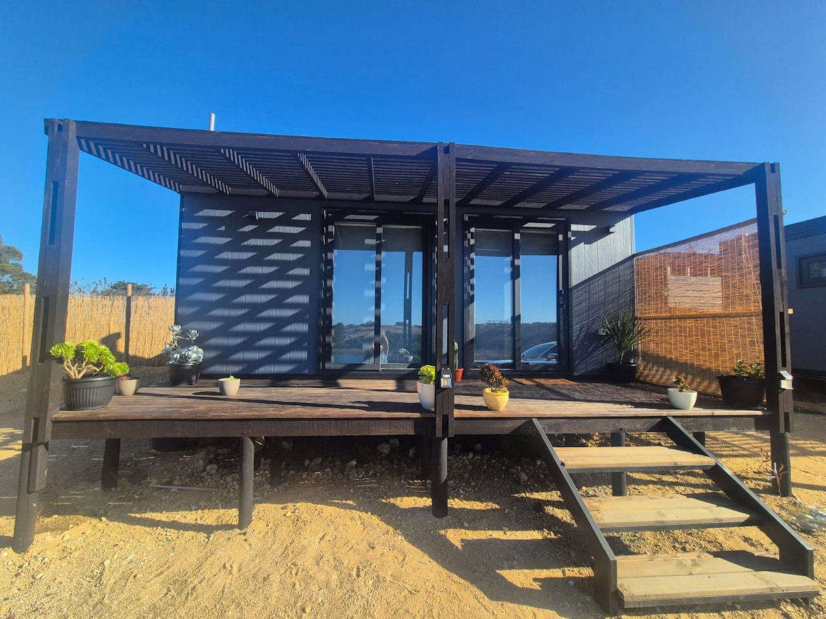 Son dos apartamentos tipo Tiny house de 36 metros cuadrados, con vista al mar. A pocos minutos caminando a la playa. Ideal para parejas y amigos. Cercania con minimarket, restaurantes, cafeterias. Tiene una cama matrimonial mas un sofá cama. Incluye ropa de cama, jabon, papel higenico, estacionamiento para un automovil. La cocina esta equipada con horno, parrilla a carbon, calefacción eléctrica y todo lo necesario para que tu estadía sea inolvidable. ! te esperamos ¡