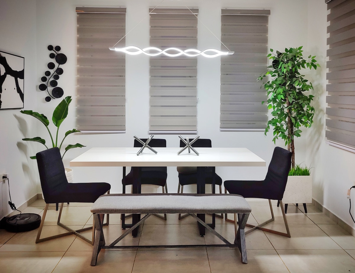 ¡Bienvenidos a tu escapada tropical en Aguadilla, Puerto Rico! Esta moderna casa contenedor ofrece la combinación perfecta de lujo, privacidad y conveniencia. Ubicada a solo minutos del Aeropuerto BQN, playas cristalinas y restaurantes de primera, es ideal para parejas, familias pequena y amigos que buscan una estadía única. Si necesitas más espacio para hasta 9 huéspedes se pueden reservar dos alojamientos según disponibilidad en la misma propiedad. Sigue el enlace: airbnb.com/h/charlieshousepr