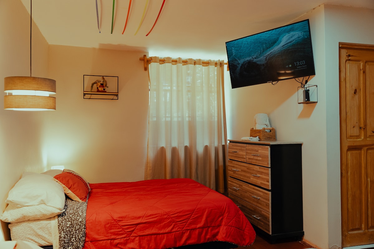 ENCONTRASTE EL LUGAR IDEAL en Cajamarca, barrio residencial, caminando a 10 min de la Plaza de Armas. LOFT en segundo nivel, 1 cama matrimonial + 1 camarote (ingresan hasta 4 personas) kitchenet, sala-comedor, WIFI, smart TV, baño completo externo PROPIO en primer nivel. Ingreso independiente en un lugar familiar, cálido, seguro y buenas vibras. Creemos en el turismo inclusivo y alternativo, estamos para ayudarte. Podemos explicarte la ciudad de la mejor manera para que disfrutes Cajamarca