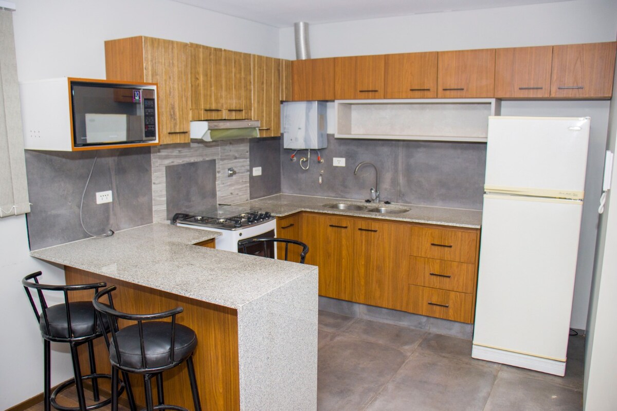 🏡 Amplio y confortable monoambiente, ideal para descansar o trabajar con total comodidad. Cuenta con una cama para dos personas y un sofá cama adicional. 🍳 La cocina está completamente equipada con cajonería alta y baja, y todos los utensilios necesarios para 3 personas. 🏢 El edificio ofrece excelentes amenidades: lavandería y sala de estudio, todo en un solo lugar. 📍 Ubicado cerca del estadio, en una zona con todas las comodidades, supermercados, farmacias y restaurantes.