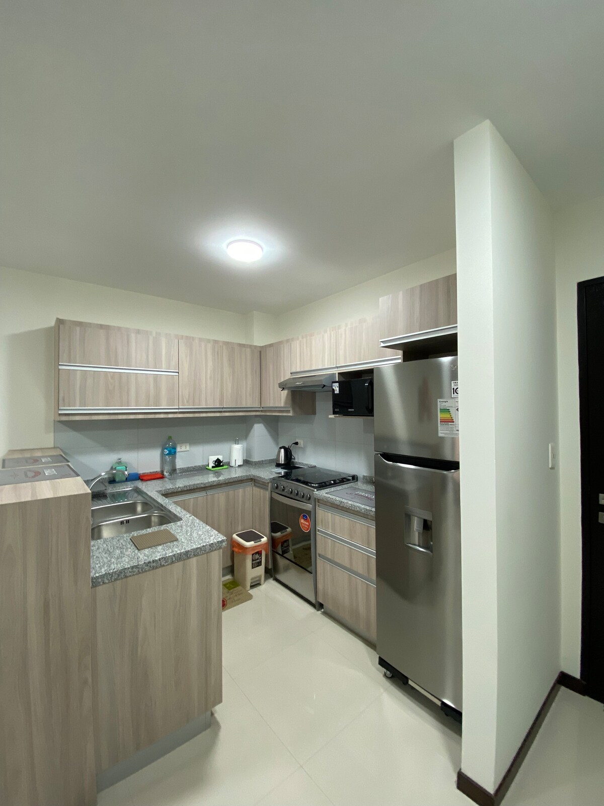 Exclusivo departamento de 1 habitación,ideal para parejas, viajeros de negocios o quienes buscan confort. Ubicado en una de las zonas más exclusivas y seguras de la ciudad, estarás a pasos de cafés, restaurantes, supermercados y centros comerciales Con habitación amplia con cama king. Cocina completamente equipada con refrigerador, microondas, cocina, lavadora Sala cómoda con sofá cama y Smart TV Piscina en la azotea con vista panorámica a la ciudad. Área de parrillero junto a la piscina70380815