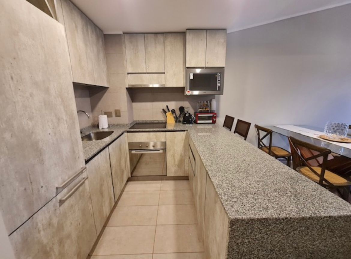Nuevo y acogedor estudio en la mejor ubicación de Pucón, a pasos de playa grande, centro, y aislado del ruido de la calle principal. Cuenta con cama de 2 plazas, un futón de 2 plazas, cocina full equipada, baño completo, WiFi, TV 49" con Netflix, Disney+ y más, terraza, calefacción, parrilla, cafeteras, 2 bicicletas de uso ilimitado, entre otros. Estacionamiento público frente al acceso al edificio disponible. Incluye ropa de cama, toallas, e insumos básicos de baño y cocina para cada estadía.