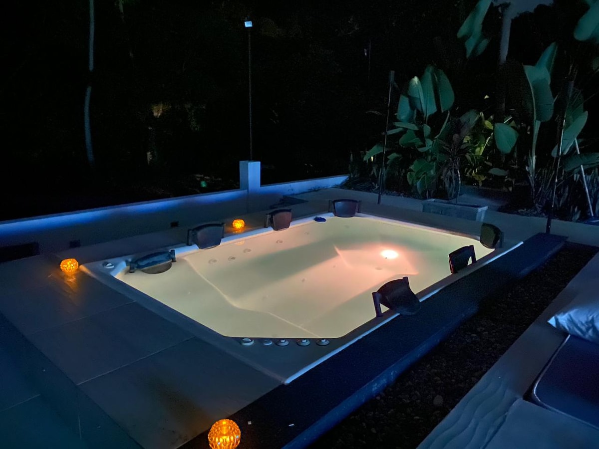 Escápate a un lugar escondido entre montañas y siente la vida del bosque tropical. Relájate en el jacuzzi para 10 personas, de día con vista a la naturaleza y de noche bajo un cielo estrellado. Disfruta A/C, cocina equipada, terrazas, cine al aire libre, mirador, caminatas por la finca, zona de fogata, spa exterior. A solo 10 minutos del centro histórico, tu refugio perfecto para desconectarte y recargar energía