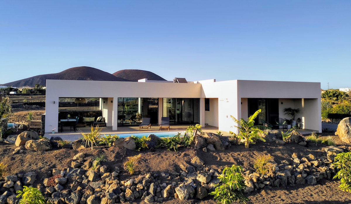 Ubicado en una zona exclusiva de Lajares justo debajo del volcán ‘Calderón Hondo’. La casa consta de dos dormitorios, un baño de conexión, inodoro, trastero, cocina, sala de estar. Cubierta de madera con ducha al aire libre y piscina climatizada (6 x 2,5 m). Diseño minimalista con amplio acristalamiento que proporciona excelentes vistas a uno de los paisajes más hermosos del norte de Fuerteventura.