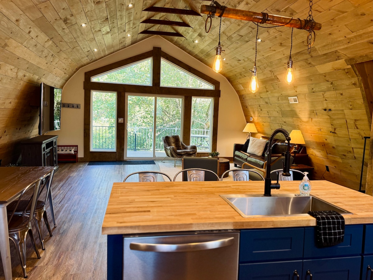 Olvídate de las preocupaciones en este gran alojamiento: ¡es un oasis de tranquilidad! Un largo y sinuoso camino te llevará a una tranquila y rústica cabaña aislada enclavada en una superficie boscosa en el campo, donde podrás dejar de lado el ajetreo de la vida urbana y simplemente poner los pies en alto y disfrutar de la naturaleza. Tanto si quieres explorar senderos naturales, visitar tiendas amish locales o simplemente sentarte en la terraza y no hacer nada o disfrutar de un baño en el jacuzzi, todo está aquí esperándote.