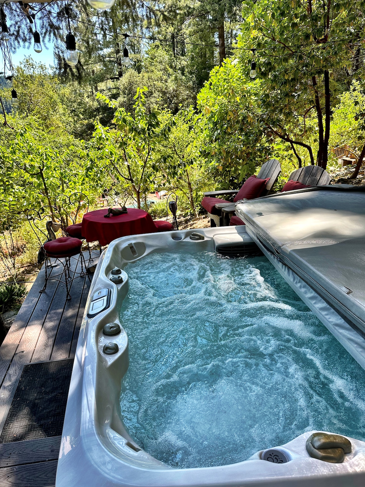¿Está pensando en una estadía de larga duración? ¡Este es su paraíso! Despiértate con café, té y desayuno y escucha a los pájaros y el arroyo estacional. Sumérjase en la bañera de hidromasaje, sauna O Relájate en tu porche privado cubierto, ¡llueva o truene! Justo afuera de tu dormitorio con fogata de gas, sillas acogedoras con mantas y ¡los Smores son especiales! ¡Con todo lo necesario para asar! Acabamos de remodelar el dormitorio en 2025, con pintura nueva y alfombra nueva. Porche cubierto nuevo y… Cama individual nueva, enero de 2026 A 30 minutos de Pt. ¡Reyes, Monte Tamalpais y playas!