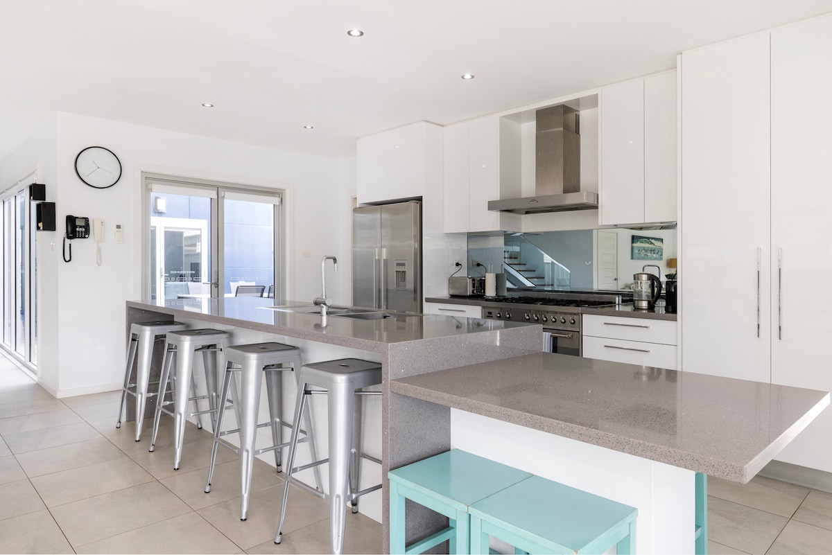 ¡Beach King lo dice todo! Te sentirás como la realeza en esta enorme casa de playa diseñada por un arquitecto, con tu propia piscina privada, enormes espacios de estar interiores/exteriores, vistas al mar, un gran patio trasero con juegos para niños y todo esto a solo unos segundos a pie de las hermosas arenas de la bahía de Jervis. Beach King ha sido impresionantemente equipada con todos los muebles, equipos y electrodomésticos de alta gama nuevos, ¡y no encontrarás una casa mejor para tu escapada a la playa! NO SE PERMITEN FIESTAS DE GRUPOS
