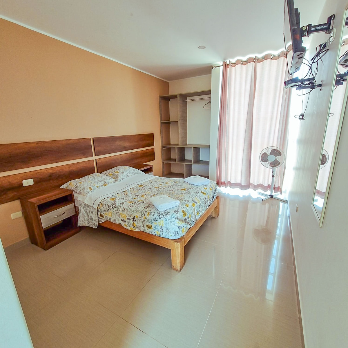 Descubre nuestra acogedora habitación matrimonial en Camaná Con baño privado y un ambiente tranquilo, es perfecta para parejas. Disfruta de la piscina al aire libre y el patio de juegos para una estancia relajante y divertida.