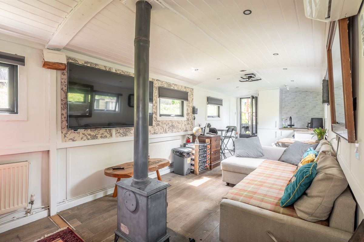 Esta casa flotante con carácter, situada en el centro de Cambridge, está a poca distancia a pie de las históricas universidades, teatros, plaza del mercado, cine, restaurantes, famosos pubs, paseos en batea, tiendas, alquiler de bicicletas, gimnasio y spa. Con una terraza al aire libre, cocina básica, nevera, inodoro, ducha de agua caliente, estufa de leña, televisión, wifi fantástico, cama doble, piscina local al aire libre. Este retiro ofrece la oportunidad de desconectar, por lo que es la escapada perfecta para familias, amigos o parejas.
