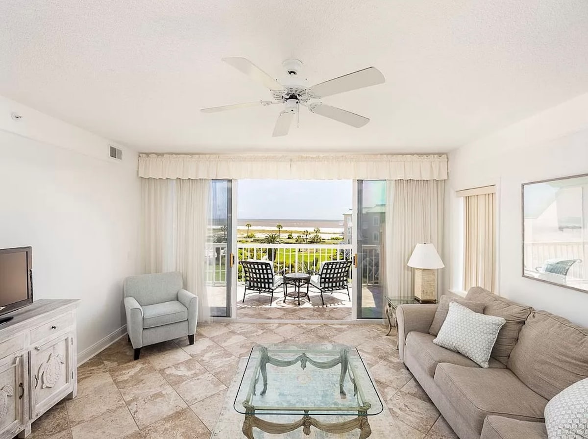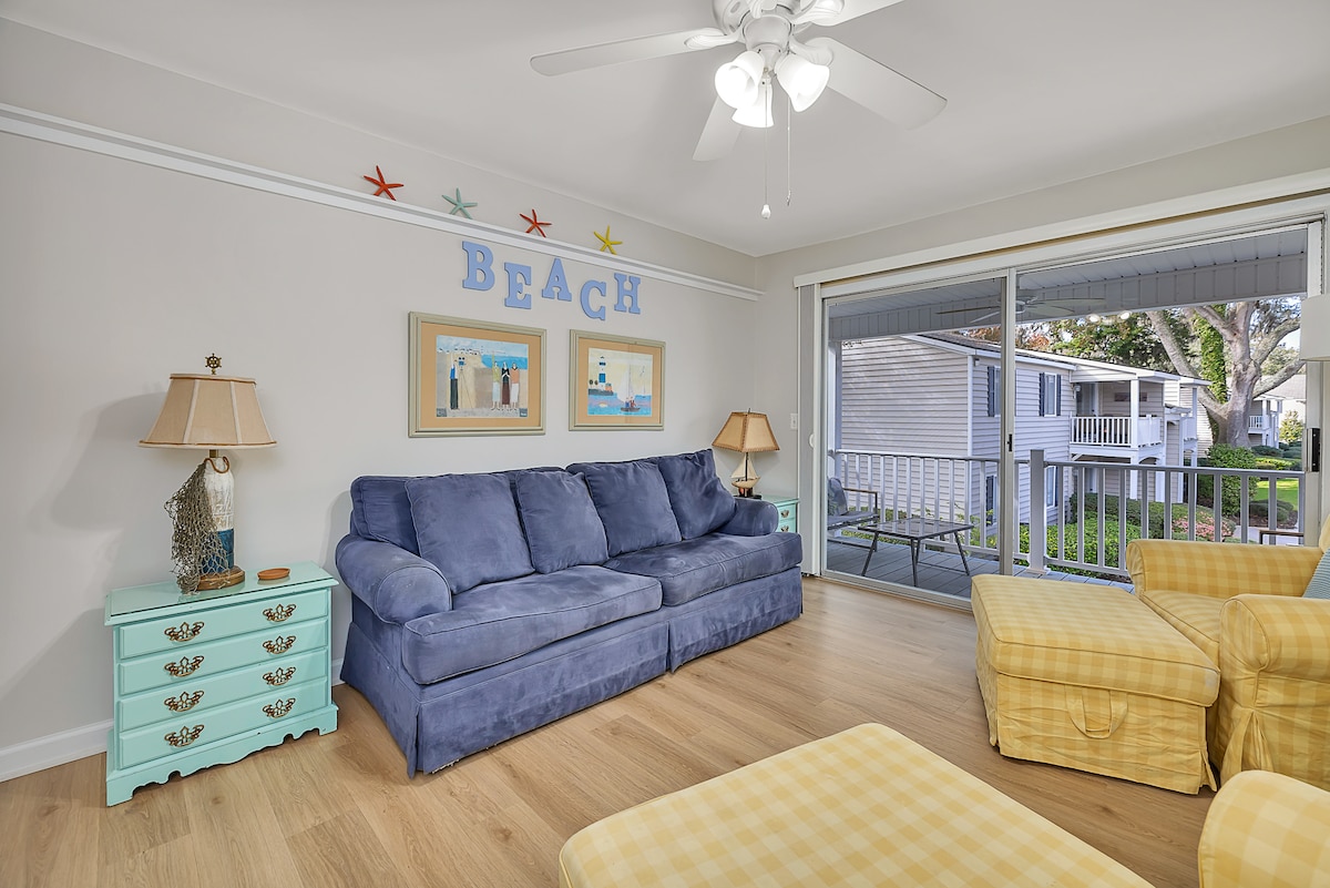 Apartamento de un dormitorio, ubicado en Ocean Walk, disponible para alquilar en la isla de Saint Simons. Cuenta con una cocina totalmente equipada, cama tamaño king, internet y 2 televisores con cable. Nuestro apartamento está situado en la segunda planta (sin ascensor) en la parte trasera del complejo. Tenemos una terraza privada que es perfecta para tu taza de café de la mañana. El complejo cuenta con dos piscinas (una climatizada estacionalmente), canchas de tenis y un estanque. Ocean Walk se encuentra a menos de una milla del muelle, la playa, las tiendas y los restaurantes.