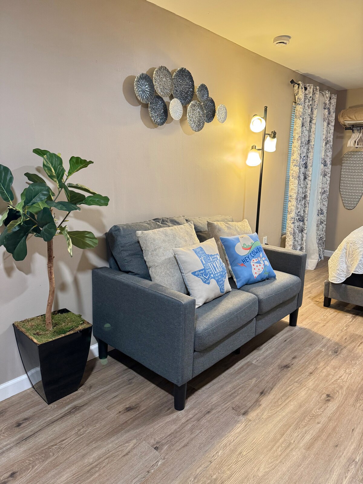 Disfruta de tu privacidad en esta hermosa suite. Aparte de mi casa en un barrio nuevo, tranquilo y seguro. Cama tamaño queen. Sábanas de algodón de 1000 hilos. Entrada independiente. Baño privado Aparcamiento en la entrada Televisor enorme con Netflix y YouTube. Internet wifi Microondas y nevera. Cortinas Blackout. Aire acondicionado central controlado por el propietario. No hay lavadora ni secadora.