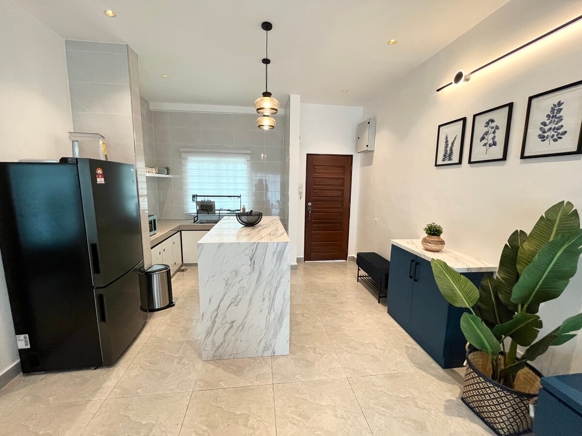 Nuestra acogedora estancia en casa se encuentra en Quintet Residence en Tanah Rata, Cameron Highlands. Los huéspedes pueden disfrutar de los exuberantes y relajantes alrededores junto a su propio jardín ajardinado privado frente a la Casa Club, pero a pocos pasos de los servicios públicos clave. El estacionamiento está dentro de nuestra propiedad cerrada y vigilada. Habrá estacionamiento adicional fuera de la residencia y es gratuito. Nuestro alojamiento es espacioso y funcional con velocidad de WiFi de hasta 300 Mbps y Netflix. Tiene capacidad para 7 personas cómodamente.
