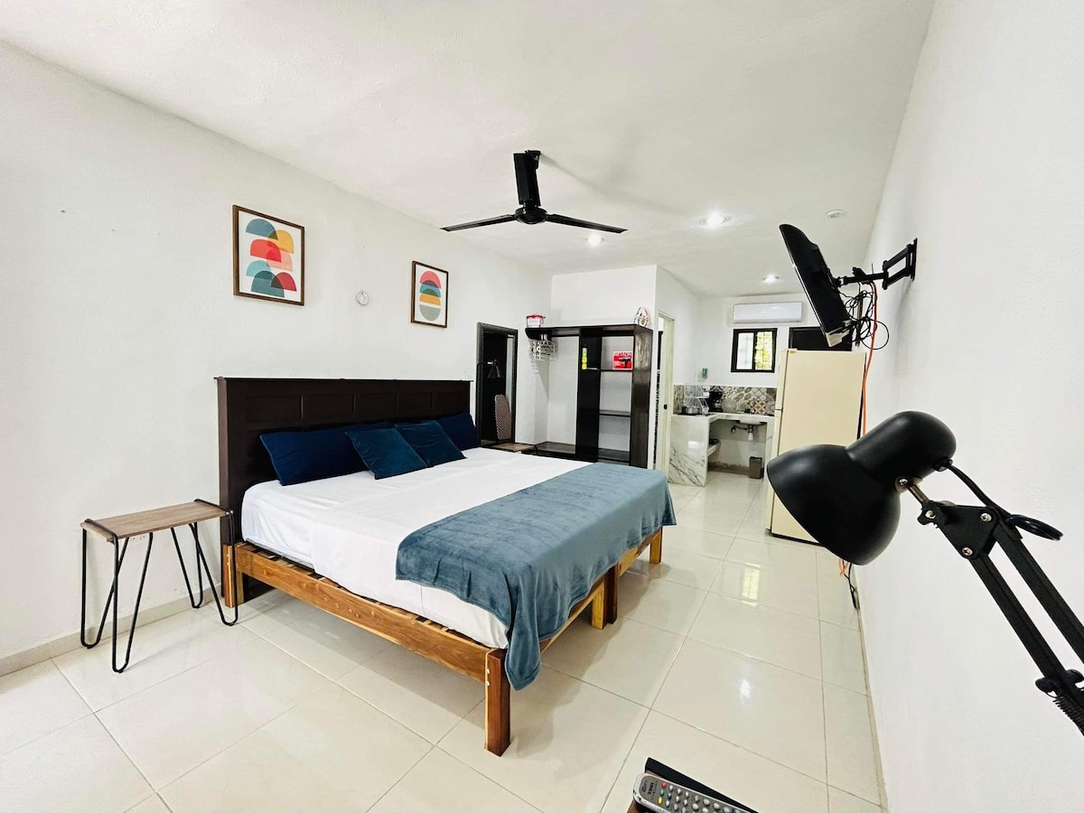 Dpto. con cama king size ideal para 3-4 personas , con hamaca extra si la desean para la 4ta persona, cuenta con tv , Disney+, Netflix , hbo Max , YouTube, etc. , aire acondicionado, refrigerador, cafetera, utensilios de cocina, lugar cómodo y privado. Cuenta con cámara de seguridad en el espacio destinado para su automóvil, cargador para auto eléctrico”costo extra De igual manera contamos con renta de scooters eléctricos Xiaomi , por si desean trasladarse de un lugar a otro de manera eléctrica