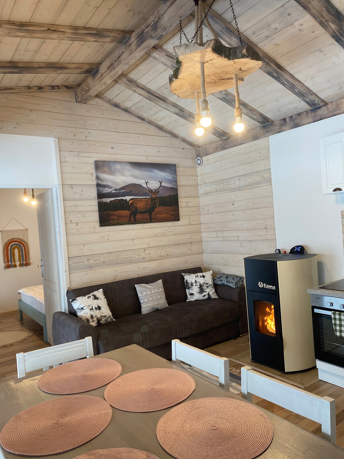 Chic and cozy OFF-grid cabin located near the forest, in the middle of the Apuseni mountains with a spectacular view of the Vulcan peak. If you love nature and you enjoy peace, this is definitely a place where you can relax and disconnect from absolutely anything that means noise and artificial light. Rediscover the joy of simple things through the chirping of birds and the clean air from an altitude of 800 m.