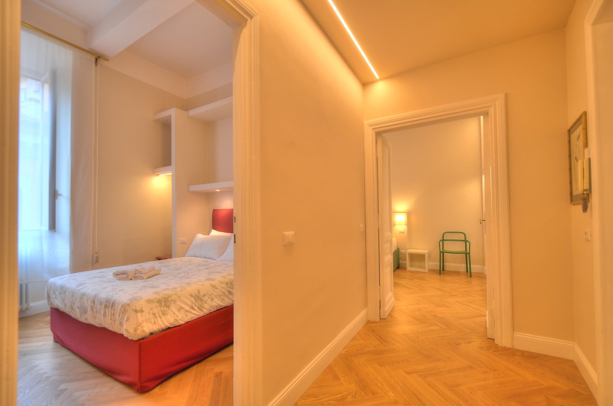 Appartamento al secondo piano di Palazzetto de Lante (senza ascensore con scale antiche in pietra strette e ripide, sconsigliate a persone con ridotta mobilità) con camera matrimoniale, area wellness con vasca romana e bagno turco. Bagno privato con doccia. Soggiorno con cucina completa, divano letto e piccolo bagno di servizio. La cucina è dotata di piastre a induzione, frigorifero, congelatore, forno tradizionale, forno a microonde e macchina Nespresso®.