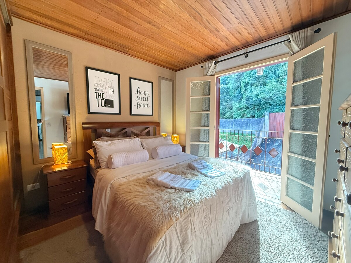 Casa en Campos do Jordão mascota con gran jardín, todo amurallado, bien seguro para mascotas. Está a 10 minutos del centro turístico en coche. Casa segura con equipo de cocina básico. Son dos cómodas habitaciones. Trabaja con la llegada y salida flexibles si no hay otros huéspedes que lleguen o salgan el mismo día. Vivo en la cima de la casa que alquilo, en otra casa, compartimos solo el estacionamiento, tiene dos tramos de escaleras con cuatro escalones cada acceso.