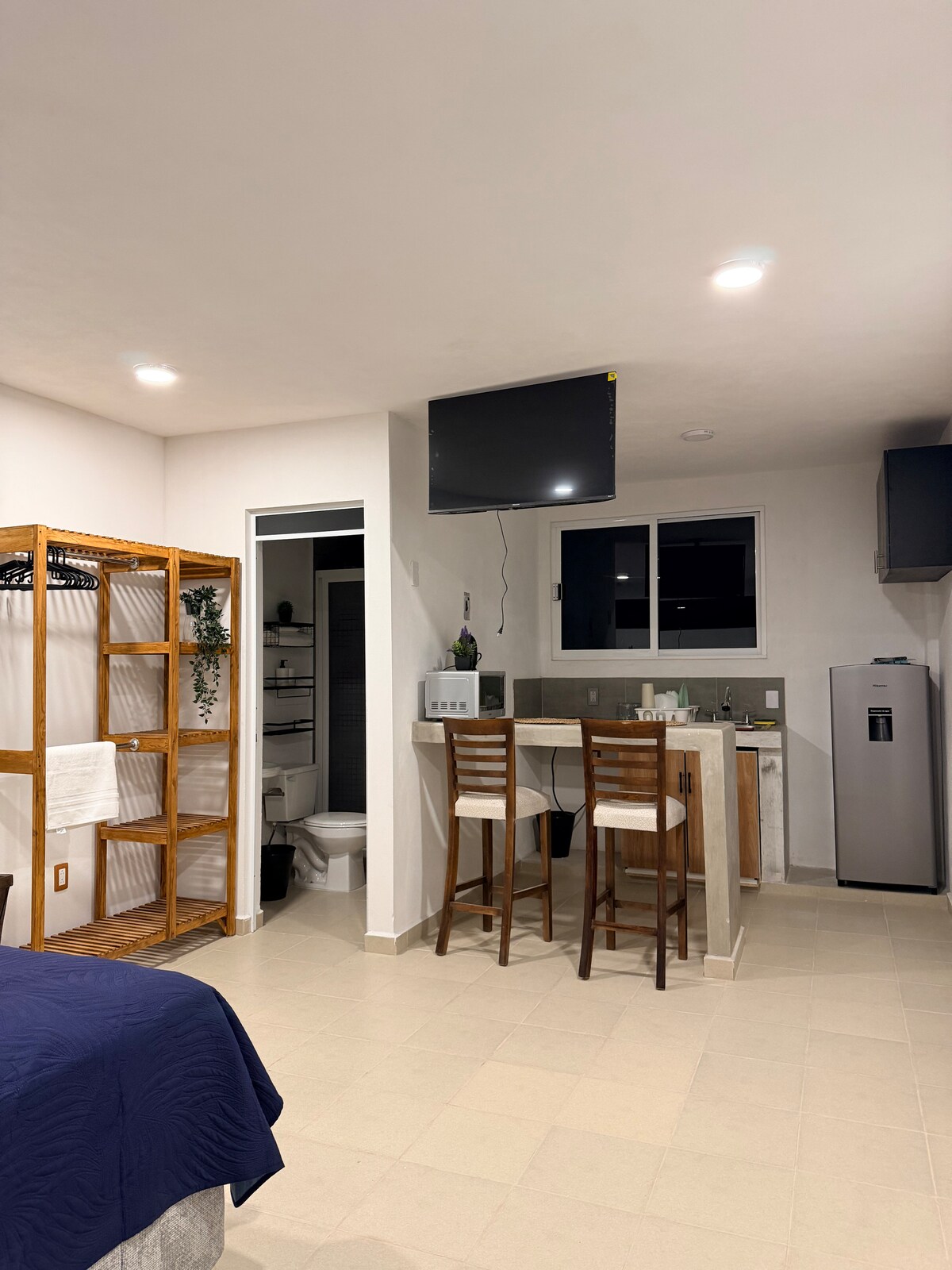 Ya sea en pareja o viajero solitario disfruta de una increíble experiencia en este loft ubicado en el corazón del Pueblo Mágico de Tepotzotlán. La terraza privada es perfecta para tomar un café por la mañana, leer un libro o simplemente contemplar el paisaje mientras el sol se oculta tras las montañas. Disfruta de una estancia acogedora : 🛋️ Sala cálida y luminosa (TV) 🍳 Cocina equipada 🛏️ Cama confortable ☕ Terraza con vista panorámica 🌿 Ambiente tranquilo y privado