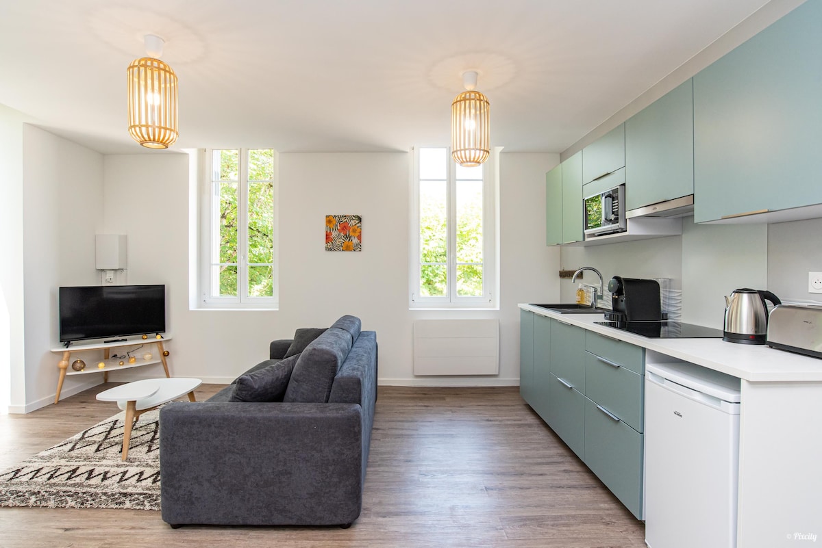 Très bel appartement lumineux au coeur de Valence d'Agen, une des plus belles cités du Tarn et Garonne. A 2 pas de la place couverte et des célèbres lavoirs Del-Théron et Saint Bernard, cet appartement T2, situé au premier étage, offre tout le confort et les équipements pour ensoleiller votre séjour. La literie est neuve et de qualité, la TV est connectée avec Netflix, Molotov et bien d'autres services. La décoration, ultra soignée, a été conçue par un pro, et la rénovation confiée aux m