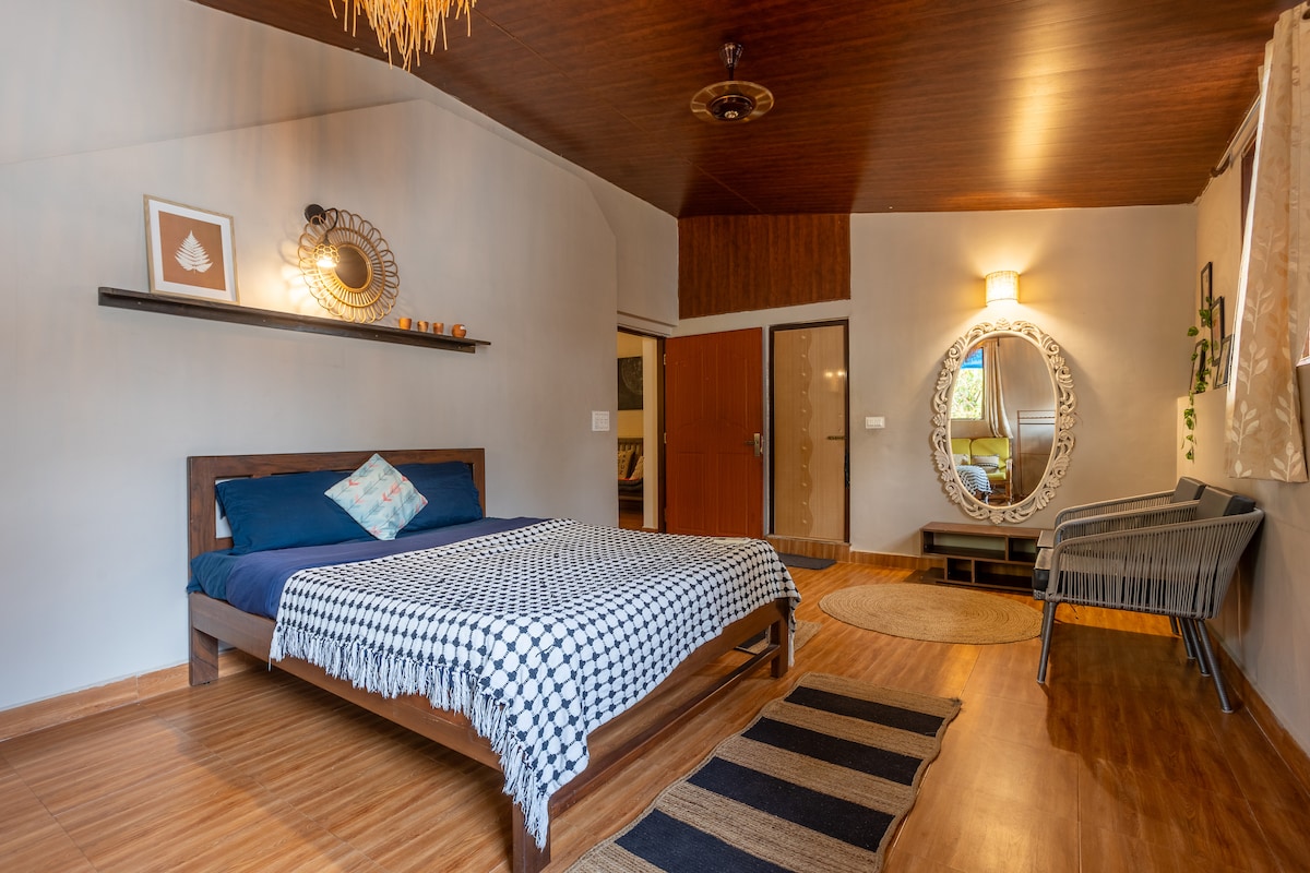 Experimenta la soledad viviendo junto al río. Este espacio se encuentra en la orilla del sereno río Chapora, muy cerca de la playa de Uddo. Despiértate con el sonido de las olas y experimenta la vida acuática en las proximidades. La casa ha sido seleccionada por un artista que añade un sentido único de la estética. La ubicación es la más popular para ver las mejores puestas de sol en Goa. Senderos naturales, manglares, observación de aves, delfines de río y nutrias. A 2 minutos de Issagoa, Cohin. A 10 minutos de Thalassa, ubicación céntrica para Vagator y Morjim.