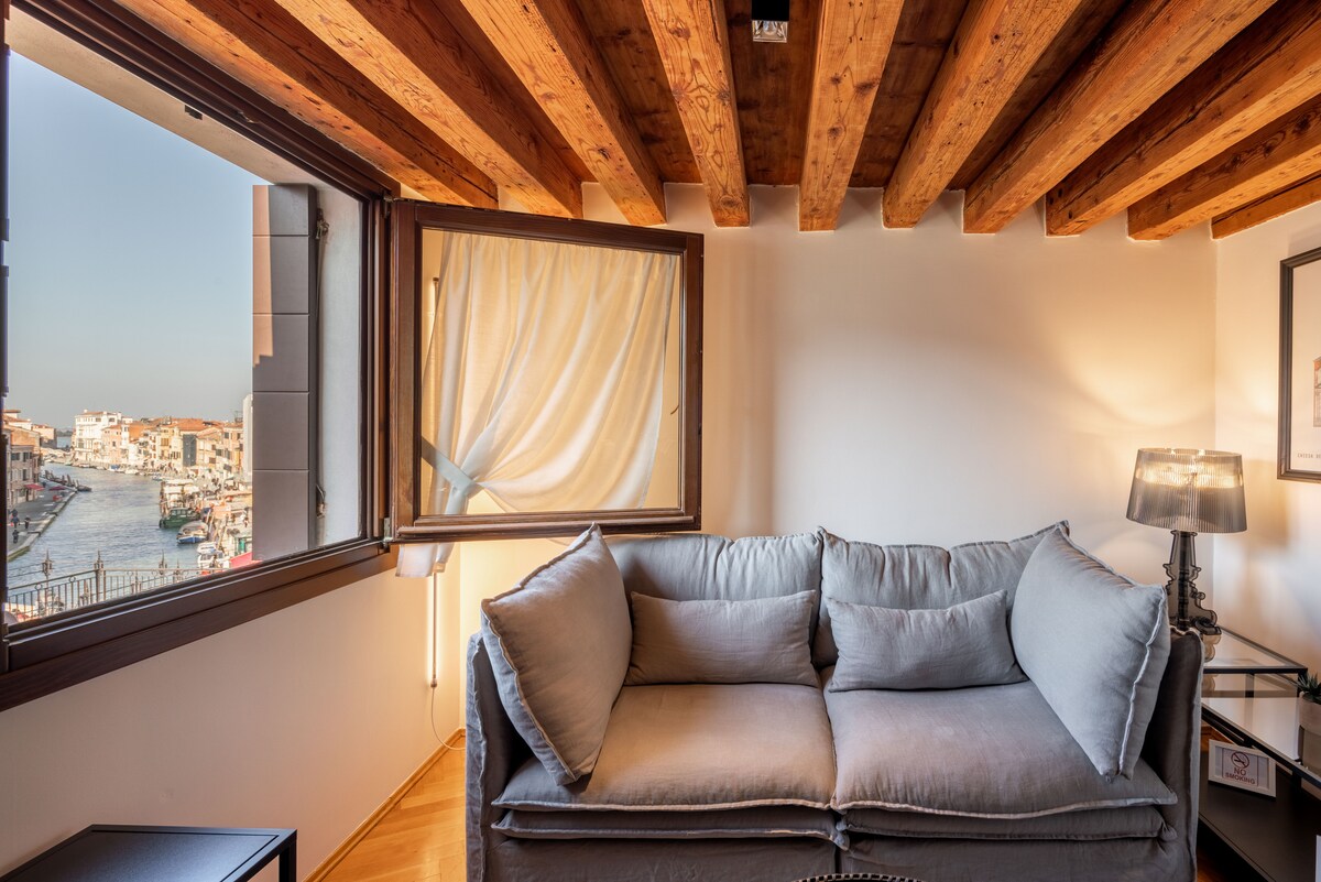 Acurrúcate con un libro, desayuna y cena mientras admiras la increíble vista de los campanarios y canales de Venecia, vive como un verdadero veneciano en el barrio más típico de Venecia a pocos pasos del puente de Rialto, Ca' D'oro y San Marco en un apartamento acabado con muebles y adornos hechos por artesanos venecianos y de Murano. Te sentirás como si estuvieras experimentando el fantástico ambiente de los años 1800, pero con todas las comodidades de un apartamento moderno. No te pierdas esta increíble experiencia.