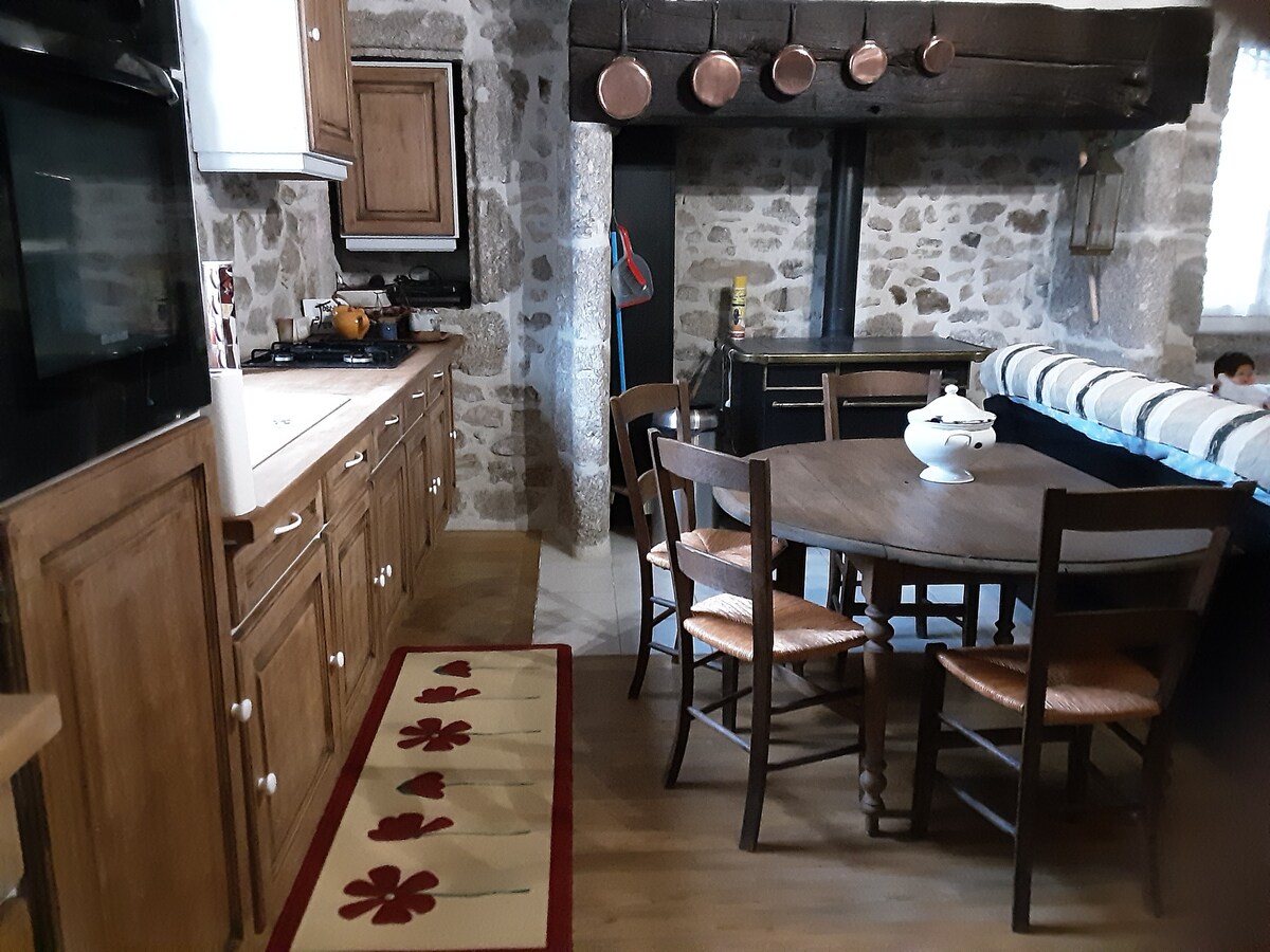 Relájese en este alojamiento único y tranquilo. Bienvenido a este remanso de paz situado a 700 m de altitud en una aldea ideal para reponer energías. Nuestra casa está equipada con: nevera + congelador 30 litros horno microondas TV Wi-Fi 2 camas de 140 + 1 cuna + silla alta Arriba: 2 dormitorios, aseo, cuarto de baño con ducha a ras de suelo Patio interior cerrado Terraza y plancha posible en común con los propietarios Se desea un mínimo de 3 noches. Se proporcionan sábanas y toallas