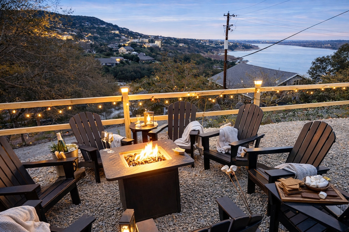 Una sinuosa carretera por Texas Hill Country conduce a una encantadora casa de campo situada en lo alto de un terreno elevado que espera tu llegada. Las reuniones nocturnas tienen lugar en una cálida bañera de hidromasaje o una acogedora fogata, perfecta para hacer s'mores. Visita una bodega local, navega en un barco, camina por la garganta del lago Canyon, toma el sol en la «playa del lago», flota por el río Guadalupe con una bebida de tu elección o deslízate por los tubos del parque acuático Schlitterbahn. ¡Canyon Lake es realmente un lugar divertido y relajante!