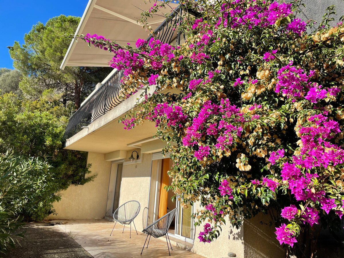 Villa de lujo frente a la playa con jardín paisajístico privado de 300 m2 (vistas al mar y a las montañas). 3 dormitorios privados con camas tamaño queen ¡Aire acondicionado central independiente en cada habitación ! 2 baños totalmente equipados: 1 interior + 1 exterior 2 baños, incluido 1 independiente. (Villa totalmente renovada en junio de 2023 con muebles de alto standing solo y decoración moderna / natural)