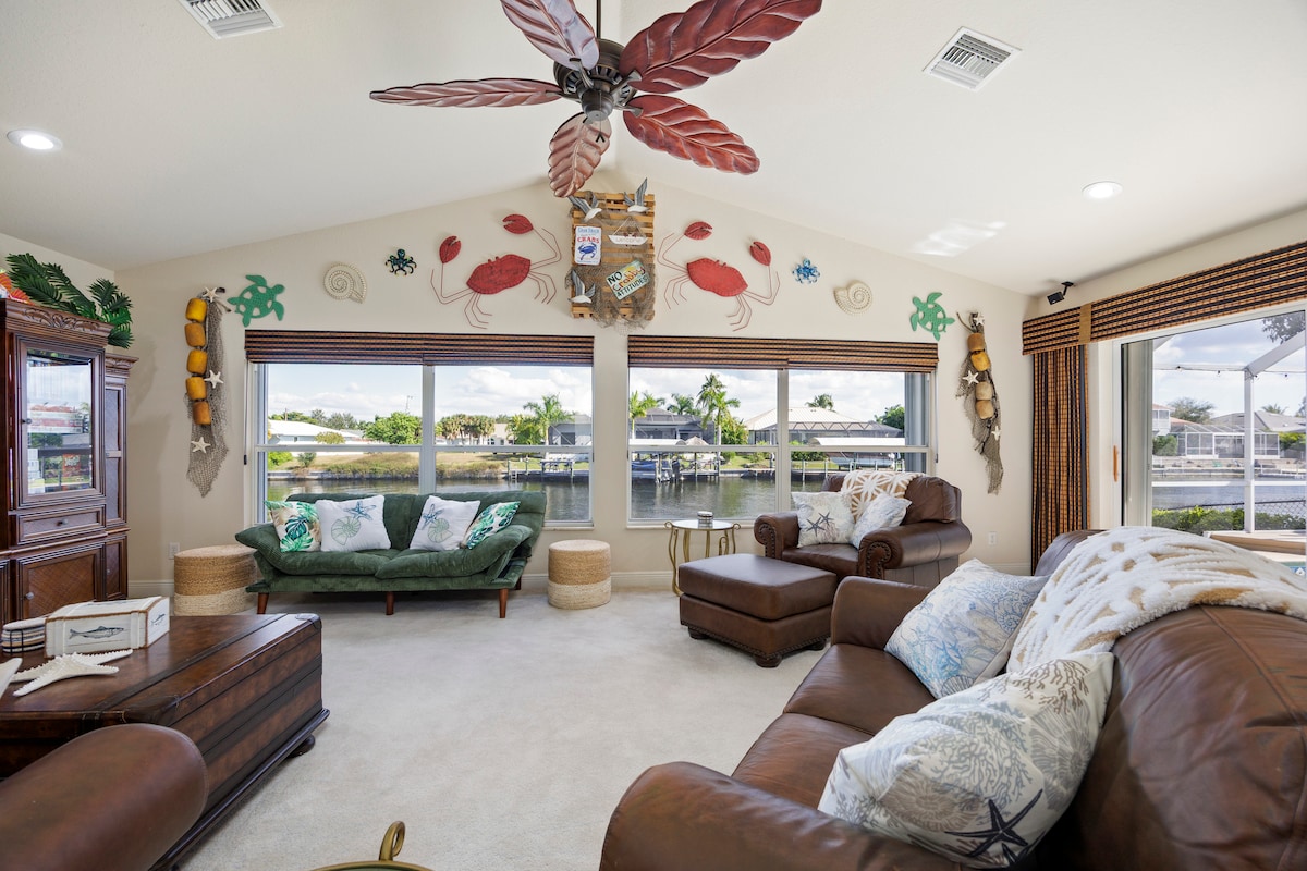 Esta hermosa casa totalmente equipada está ubicada en el encantador barrio de Orquídeas. Como su nombre lo indica, la serenidad te inundará mientras te relajas y te desconectas en esta hermosa casa de 3 dormitorios y 3 baños. Ubicada junto al río Caloosahatchee, esta es una de las pocas casas selectas en el área de Cape Coral/Fort Myers que ofrece privacidad y lujo, así como acceso directo al golfo. ¡Las mejoras recientes incluyen una cubierta de piscina recién renovada y un cargador de vehículos eléctricos para mejorar su experiencia!