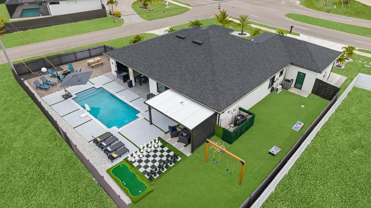 ¡Escapa al Lujo! Te cubrimos - ¡sin tarifas de servicio! Descubre nuestro retiro de 5 estrellas en Cape Coral: WiFi de alta velocidad, TVs inteligentes, ropa de cama premium y más. Relájate con estilo y serenidad. Tu refugio pacífico te espera! Ubicado en el corazón de Cape Coral, nuestro espacio meticulosamente diseñado promete una estadía inolvidable para el viajero exigente. Relájate con toda la familia en este lugar pacífico para quedarse.