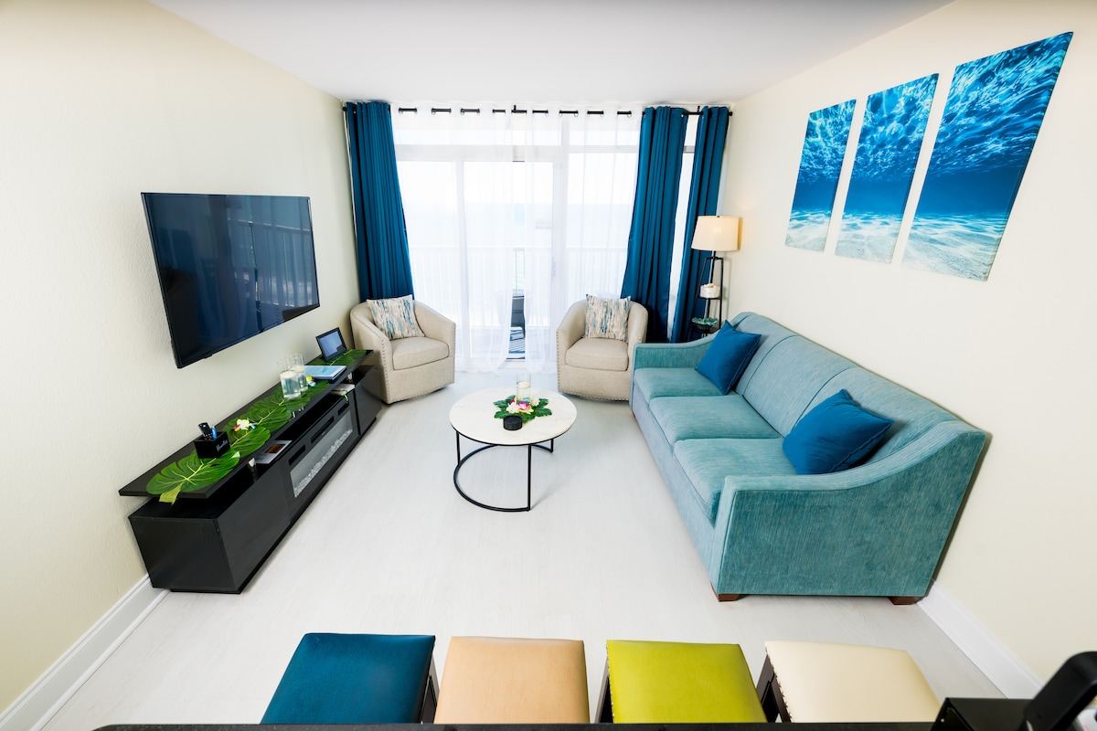 Soft light, ocean air, and space to slow down—this two-bedroom condo feels like a deep breath. Everything is set up for comfort and calm, so you can stop managing and start relaxing. • 🛏 Primary Bedroom: A peaceful king retreat with ocean views and a private bath—perfect for quiet mornings and deep sleep • 🛏 Second Bedroom: A cozy king suite with its own bathroom, giving everyone space to unwind and feel settled • 🛋 Living Area: An open, light-filled space with comfortable seating and a Smar