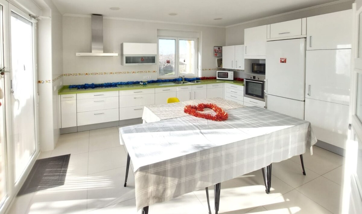 Es un Bonito Chalet, que esta muy iluminado , con terreno alrededor de césped y jardín , muy cerca del centro y admite mascotas, con todo lo necesario en la vivienda para poder disfrutar de unos dias de desconexión y relax.