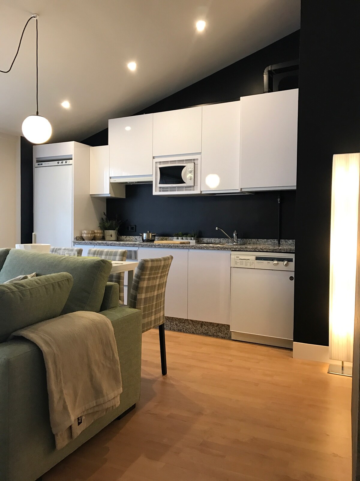 Apartamento de dos dormitorios para hasta 6 personas. Un dormitorio con cama doble y un dormitorio con dos camas individulales. Sofá-cama en el salón con dos camas induviduales. Baño completo con plato de ducha, cocina totalmente equipada con electrodomésticos (todos excepto horno y lavavajillas) y menaje. Smart TV LG de 43" en el salón y Smart TV LG de 32" en dormitorio principal. Conexión Wi-Fi de alta velocidad gratis. Plaza de Parking privada en el propio edificio (15€/noche) bajo petición.