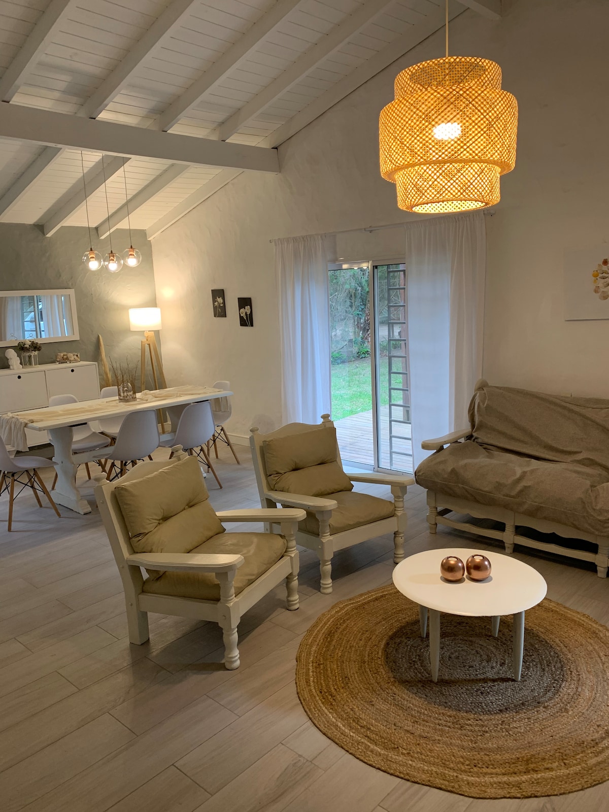 Moderna casa cerca de la playa con todo para disfrutar. Elegí relajarte en esta exclusiva casa muy cerca de la playa, con piscina con opción para climatizar, sauna seco, parrilla, hogar a leña y amplios espacios diseñados para el confort. Tres suites, playroom, galería con ping-pong y jardín. Ideal para vacaciones en familia o con amigos, rodeado de naturaleza y estilo. 🌿