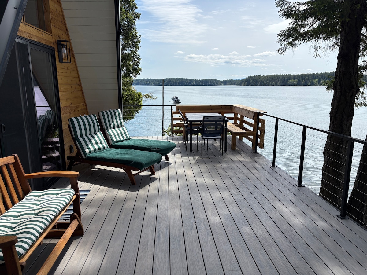 Retiro tranquilo frente al mar con vistas al monte Rainier