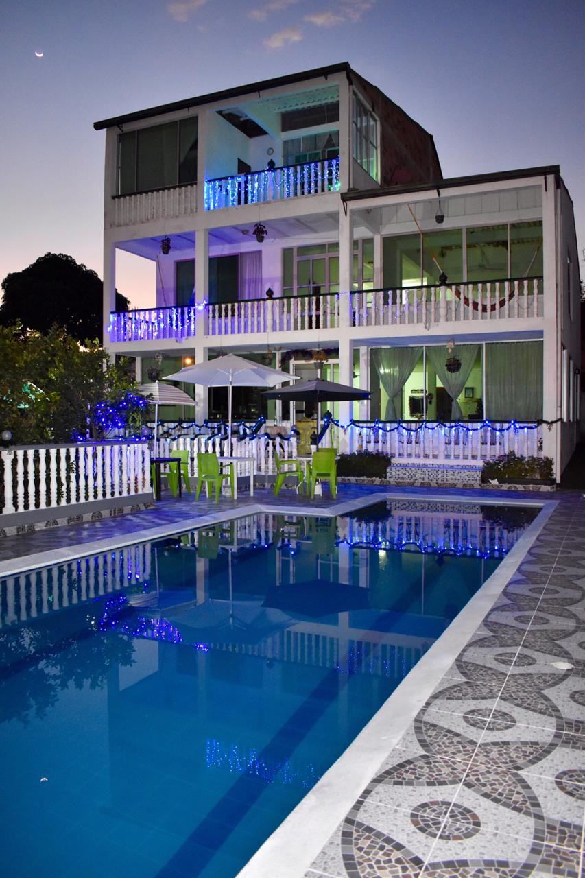 Casa campestre con 5 habitaciones, sala de televisión, 3 baños, cocina con todo el menaje necesario, porche con hamacas, BBQ, Kiosko, piscina privada con dos baños exteriores, parasoles, ventiladores, canchas de waterpolo, minitejo, senderos ecológicos, zonas verdes aledañas, ideal para el descanso. Ubicada a 2.5 Km del pueblo, aproximadamente 10 minutos en automóvil.