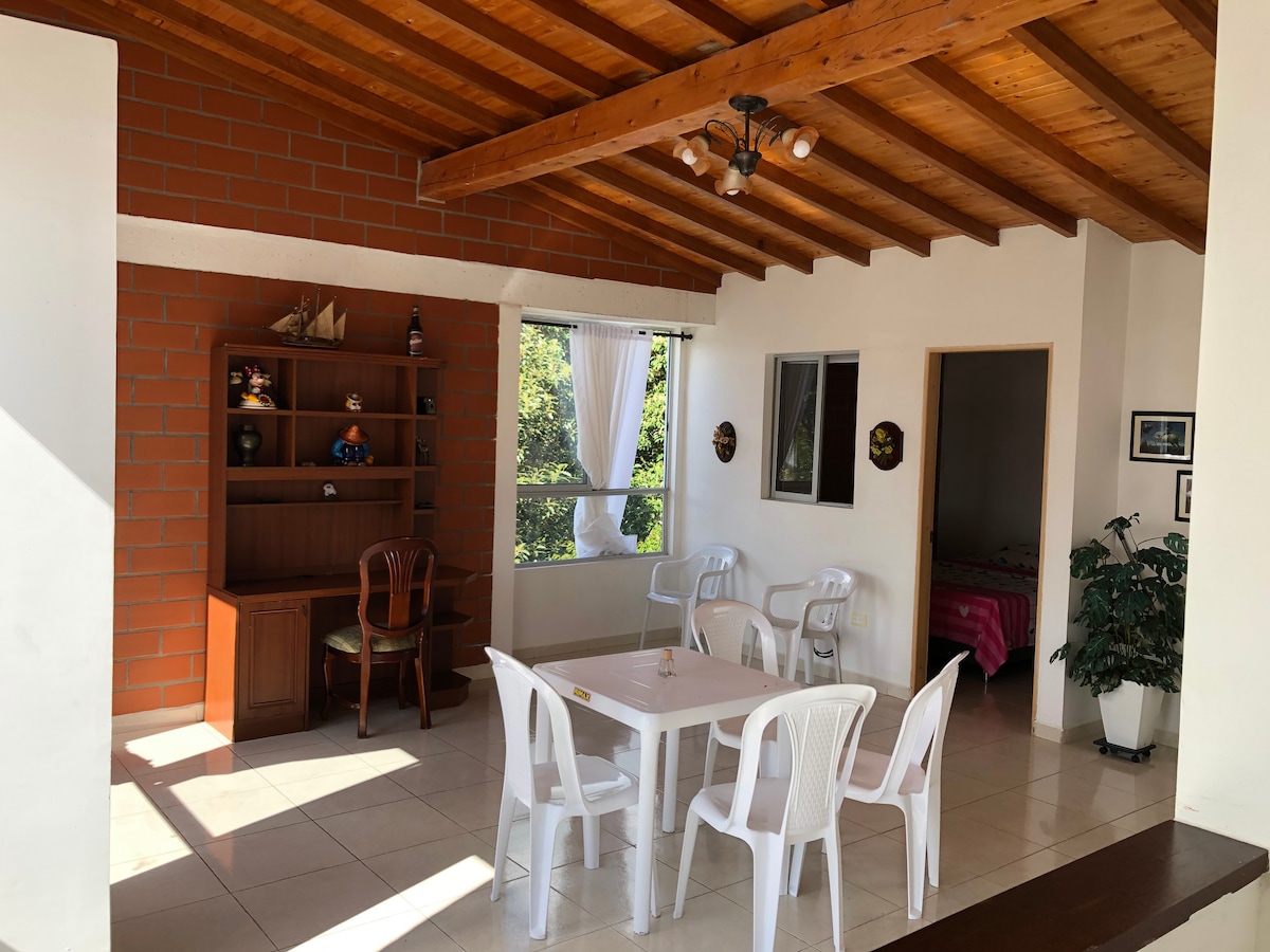 Ofrecemos un espacio tranquilo, confortable, para estadías cortas o largas, cerca al parque principal, zona rosa, lugares de cerámica, centro de convenciones, biblioteca, zonas deportivas, diseñado para teletrabajo, empleados, personas de negocios, para descansar, disfrutar del turismo con familares, pareja o amigos; privacidad, zona de parqueo en la calle, ubicado en barrio residencial, con vista panorámica a las montañas, cerca a centros educativos. Con internet de 200 megas y ethernet.