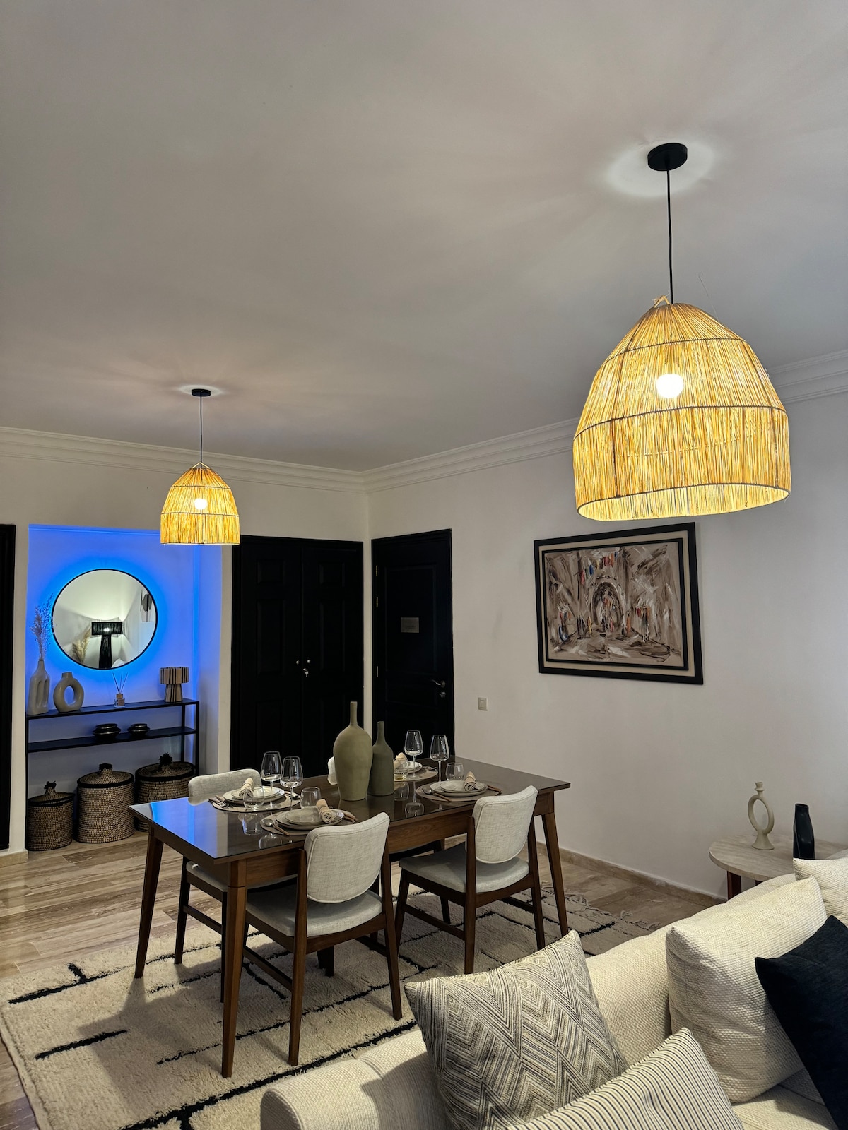 Bienvenido a La Suite Jonan. Amplio apartamento ubicado en el corazón del animado barrio de Marrakech, donde el lujo y la comodidad convergen para crear una estancia inolvidable. Situado en una ubicación céntrica privilegiada, ofrece fácil acceso a los famosos monumentos de Marrakech, los bulliciosos zocos y la animada vida nocturna. Sumérjase en el ambiente encantador de Marrakech mientras disfruta de la comodidad y el lujo de nuestro apartamento.