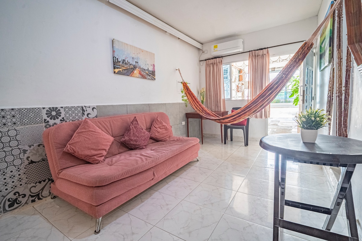 Dúplex para 1, 2 o hasta 4 personas, totalmente restaurado, con muros coloniales originales y ubicado en el corazón de Getsemaní. Disfruta de una cómoda cama doble, dos camas auxiliares, WIFI de buena velocidad, aire acondicionado, cocina equipada, sala de estar y un amplio baño. Las paredes altas y la arquitectura tradicional hacen que el espacio sea fresco, acogedor y lleno de encanto.