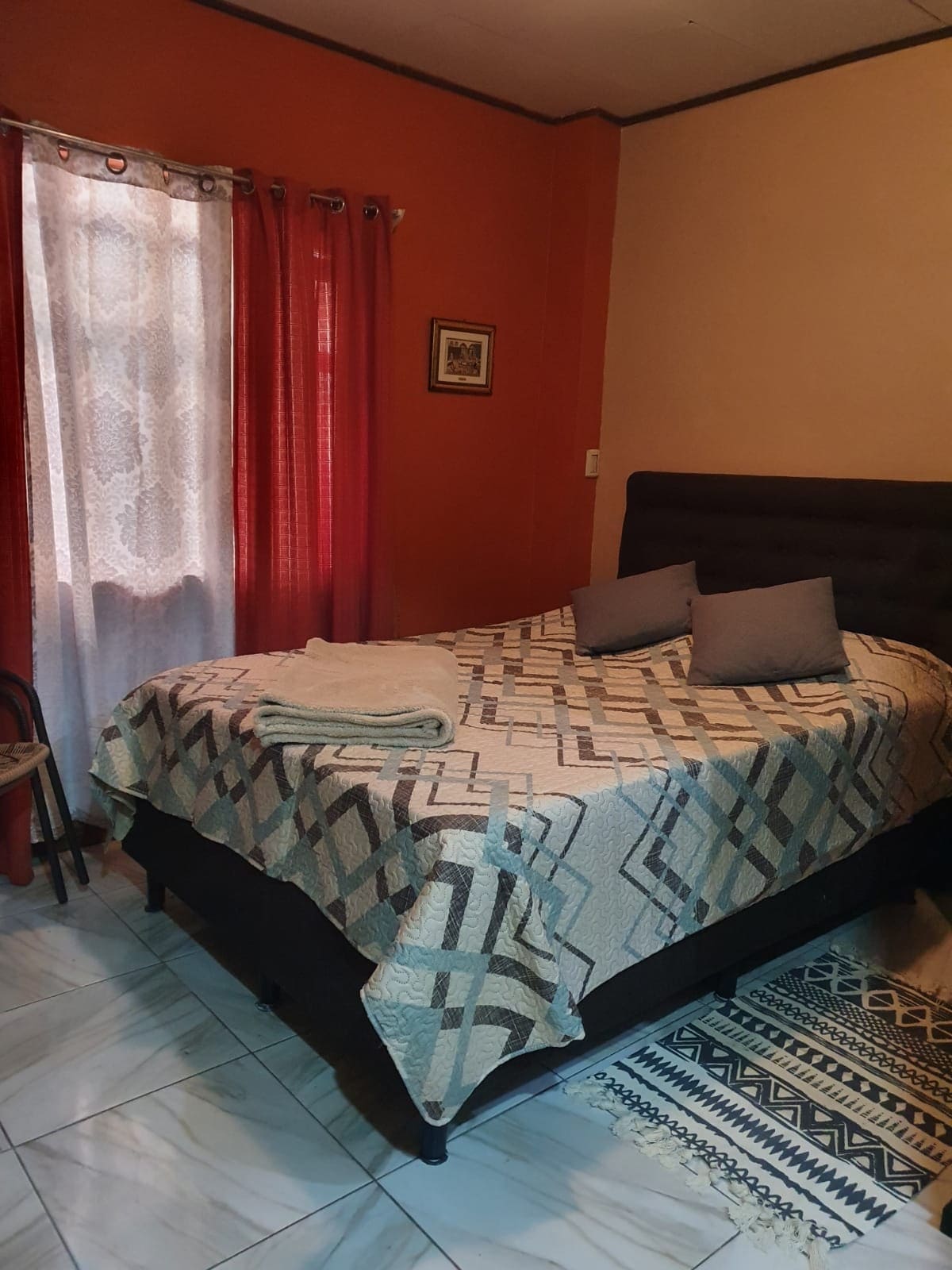 El alojamiento se encuentra ubicado a 4.2 km del centro de Cartago. Puedes movilizarte caminando a supermercados, farmacias, transporte público, restaurantes, etc. En tu estadía nuestro alojamiento te brindará una sensación de estar como en casa. Tendrás acceso a la terraza compartida con vista a la montaña, WiFi, Smart TV (Netflix, YouTube...).