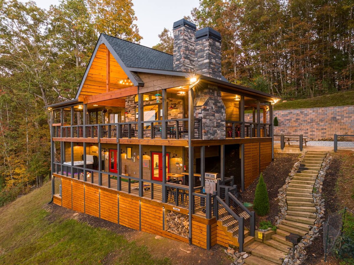 Luxury MTN Cabin, Hot Tub w/Views! 5 min to hiking